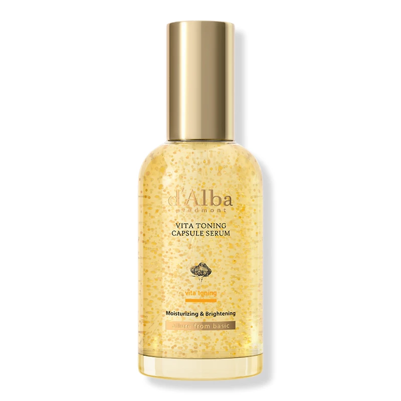 VITA TONING CAPSULE SERUM 3.38OZ. Benefits: Visibly reduces dark spots and appearance of hyperpigmentation.. Re-energizes and brightens dull, fatigued skin tone.. Improves skin elasticity and minimizes the look of fine lines.. Delivers stabilized vitamins for advanced anti-aging support.. Features: Encapsulated liposomal vitamins ensure optimal absorption and stability.. Utilizes innovative 3-step Mega Nano Liposome Technology.. Lightweight, fast-absorbing texture suitable for daily use.. Key Ingredients: Trufferol (White Truffle + Tocopherol): A patented antioxidant complex that supports elasticity, smooths fine lines, and boosts visible radiance.. Encapsulated Vitamins (E, K, C): For advanced stability and delivery deep into the skin.. Truvita Complex: Synergistic brightening blend (Niacinamide, Glutathione, Vitamin C) for radiance..