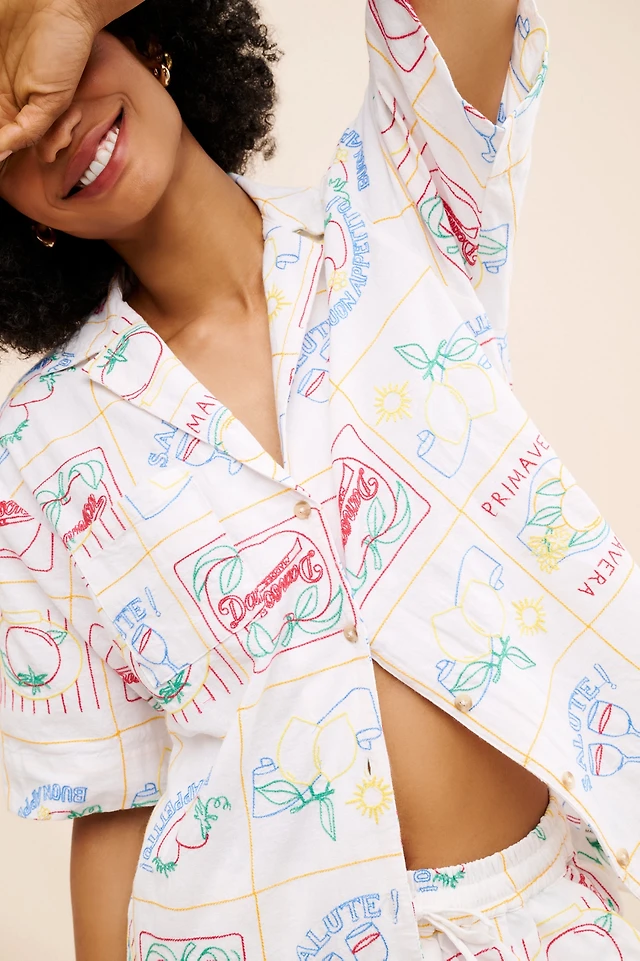Damson Madder Buon Appetito Linen Blend Embroidered Shirt