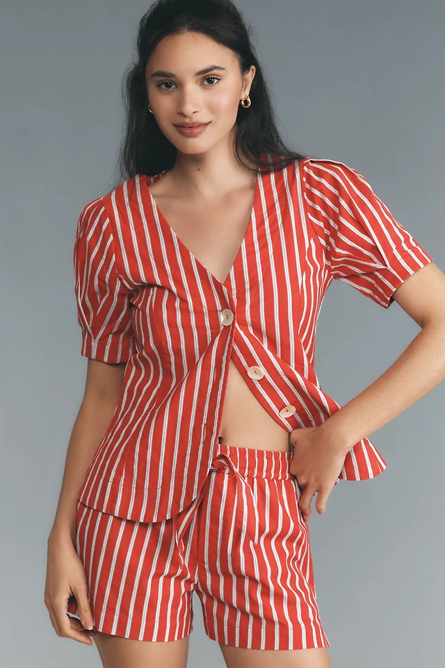 Damson Madder Shell Linen Blend Puff-Sleeve Blouse