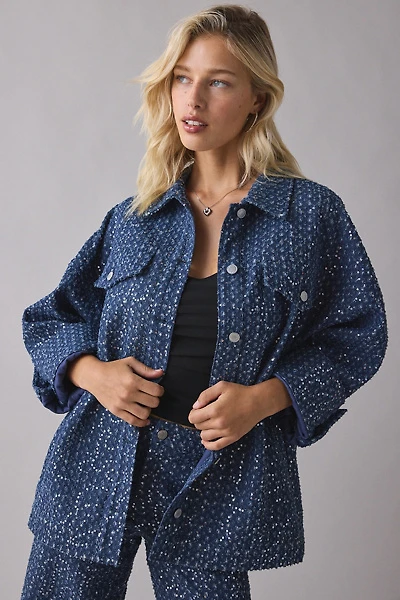 by.DYLN Valentina Sequin Embellished Oversized Denim Jacket