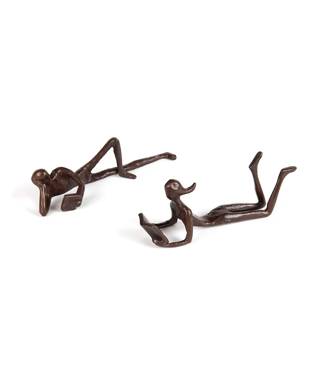Danya B. Man and Woman Leisurely Reading Bronze Sculptures - Set of 2