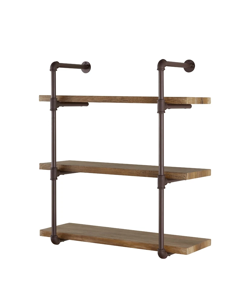 Combining imitation aged wood finish shelves with a rustic pipe frame is the newest approach to organization that can be used anywhere in your interior space. The Danya B. Three Tier Pipe Wall Shelf guarantees sturdy support for storage and brings the perfect urban industrial look to your home or office.