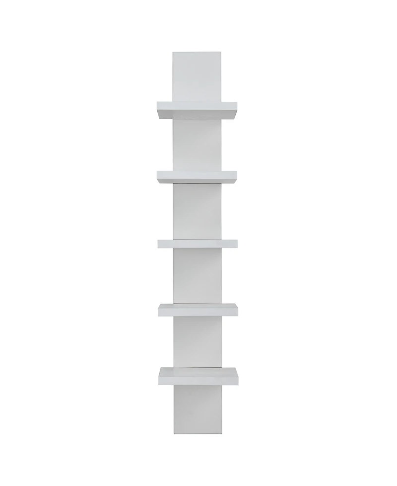 The Danya B. Five Tier Wall Shelving is a creative design and space saving solution for small areas. With its modern and contemporary finish options, it is an ideal accent for any living space. Its five-tiered, stylish design makes it just as much an elegant statement piece as it is a practical storage solution. Customize it to your space and enjoy an organized house with a standout look. Make a bold statement about your home with this modern and stylish wall shelving. Not only does it maximize your storage, but it also adds a chic touch to your space, allowing you to customize it to reflect your unique sense of style. Enjoy the convenience of practical storage and creative design in one beautiful package. This ladder shelf is available in Black, Pine, White, or Walnut finish to best match your existing decor and style.