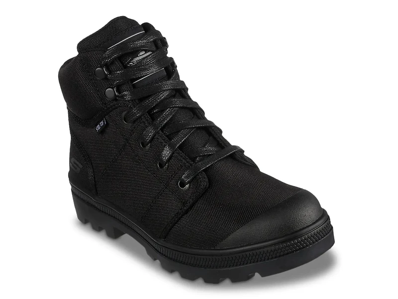 Step into safety and style with the Darragh Steel Toe work boot from Skechers. The lace-up boot featuring an Electrical Hazard (EH) safety tested to ASTM F2413 standards, also has a steel toe rated ASTMF2413, 1/75 C/75 for top-notch protection. With a RepelWell treated upper, stay free from water and stains. Also, its Skechers Air-Cooled Memory Foam insole provides daylong cushioning and its slip-resistant sole that meets ASTM F3445 standards keeps you going in wet and dry conditions.