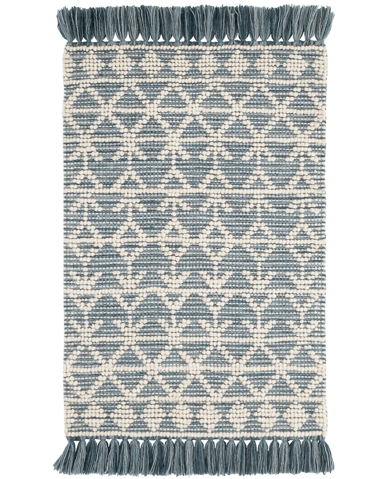 The Pembrook Handwoven Wool Rug has an intricate, Fair Isle-inspired pattern made from raised ivory loops on a flatwoven background. Durable and soft, with a classic knotted fringe to complete the look.