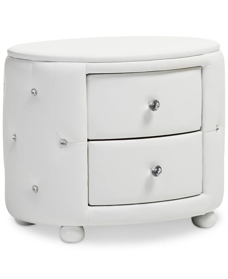 Glam up your room's chic modern style with this Davina nightstand, designed with sleek faux-leather upholstery, two drawers with faux-crystal pulls and tufting detail at the sides.