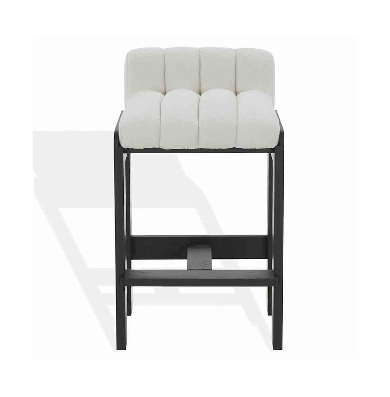 Illuminate your bar area or kitchen counter with the stunning Delphini Boucle Barstool. This standout piece captivates with its sophisticated blend of colors with an inviting Ivory seat, contrasted by a Black ash wood and plywood base. The carefully selected ash wood provides strong support while vowing an elegant appeal. Its construction ensures a solid foundation that keeps charm intact for countless days that turn into delightful nights with friends and family.