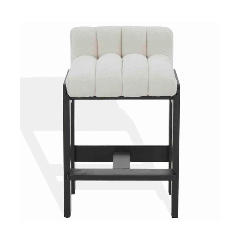 Step into a world of comfort and elegance with our Delphini Boucle Counter Stool. Colored in a soothing ivory and warm walnut, this piece merges warmth and sophistication to suit any style kitchen. Its smooth, inviting boucle fabric offers the ultimate in comfort, while a solid, robust base of ash wood and plywood ensures stability and upright posturing. The clean, minimalist aesthetic of this counter stool lends itself perfectly to modern or traditional interiors alike. Upgrade your kitchen seating with our Delphini counter stool, a fusion of comfort and contemporary design that transcends time and trend.