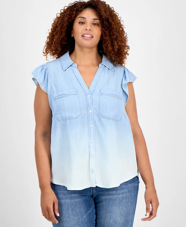 Style & Co Women's Button-Front Flutter-Sleeve Top, Macy's Exclusive