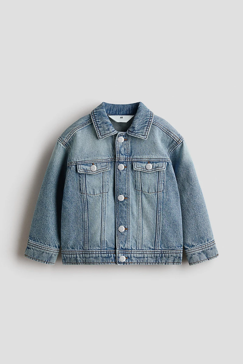 Trucker-style denim jacket in soft cotton. Collar, snap fasteners at front, and yoke at front and back. Chest pockets with flap and snap fastener, and a snap fastener at cuffs.