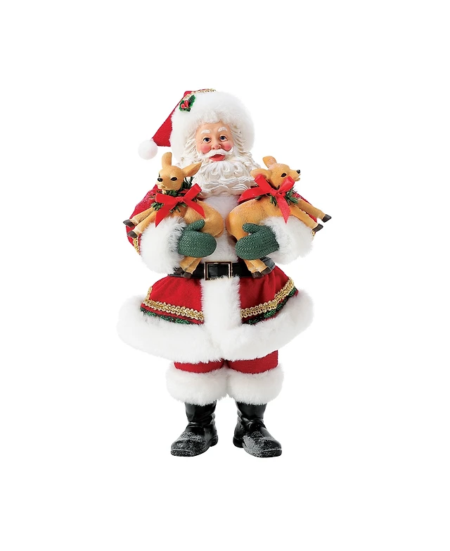 G.DeBrekht Woodcarved and Hand Painted Santa Deer Crossing Santa Figurine