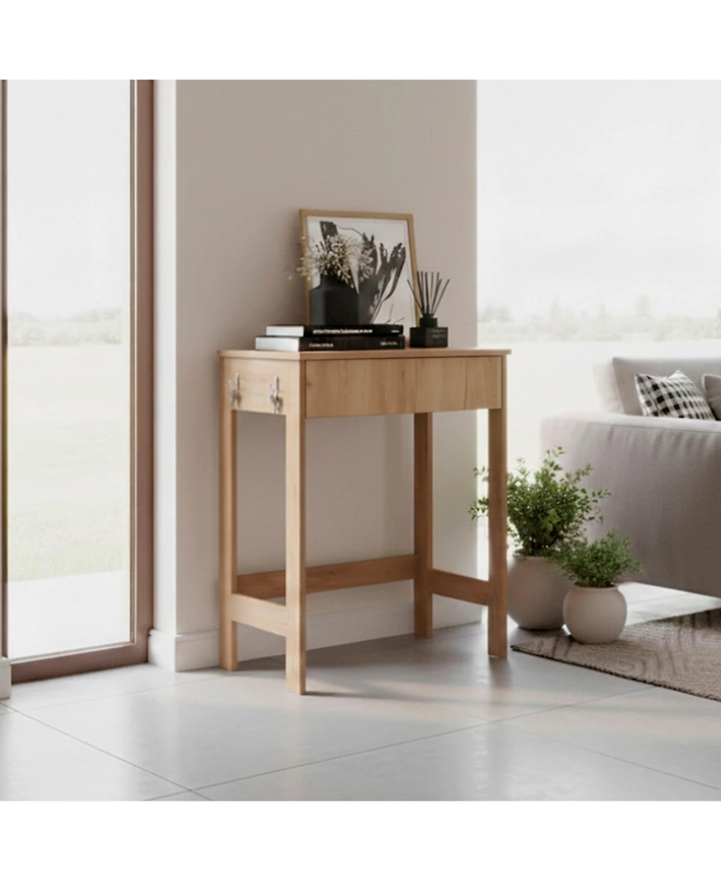 The Yaak Desk is a compact and functional piece ideal for any modern workspace. It features one practical drawer for organizing stationery or personal items and stands firmly on four sturdy legs, ensuring long-lasting support. Its clean silhouette and space-efficient structure make it a perfect fit for home offices, study areas, or small rooms where style meets practicality. Dimensions: Height: 30.3” - Width: 23.6” - Depth: 15.7”. Furniture Type: Ready to assemble (full assembly required). Certifications: Carb phase Ii compliant – Tsca Title Vi Compliant. Warranty: 1-year warranty for wooden parts and hardware