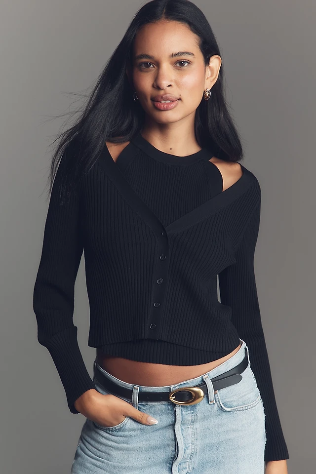 Derek Lam 10 Crosby Lonnie Layered Halter Cardigan Sweater