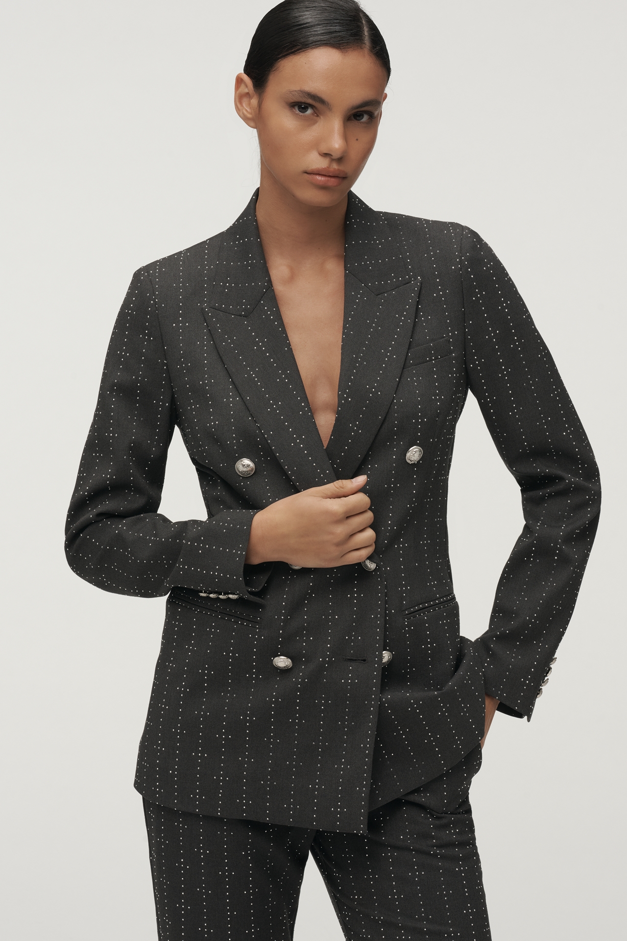 Derek Lam 10 Crosby Walter Rhinestone Stripe Double-Breasted Blazer
