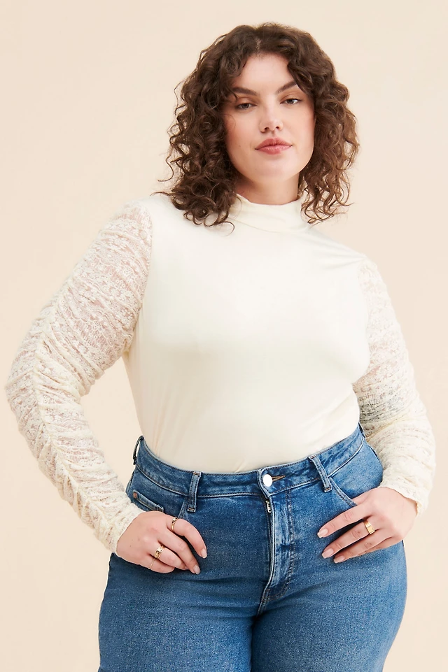 Rafaella Plus Drape Lace Sleeve Crewneck Top