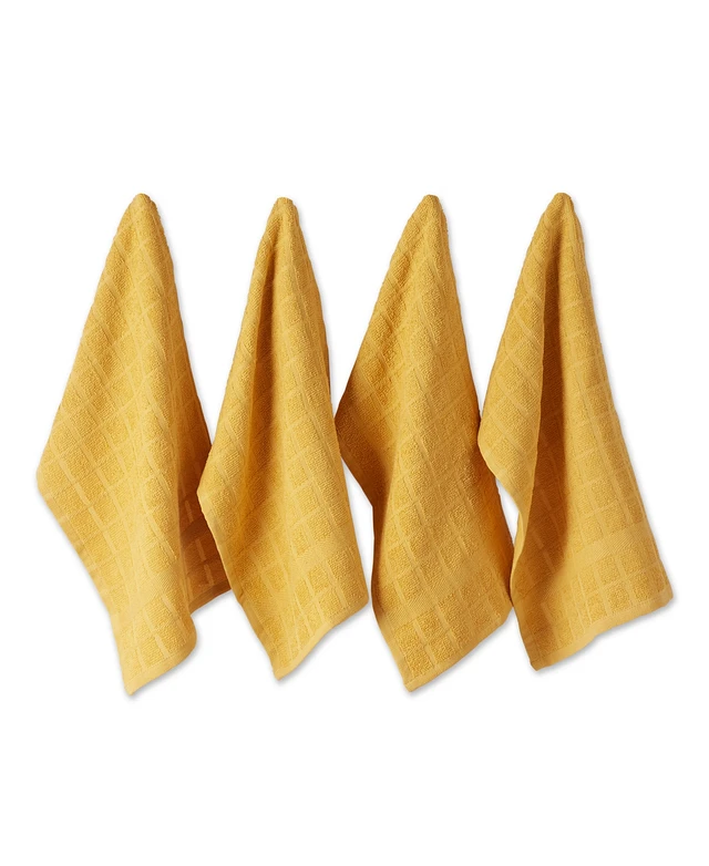Design Imports Basic Terry Collection Windowpane Dishtowel Set, 16x26", Honey Gold Solid, 4 Piece