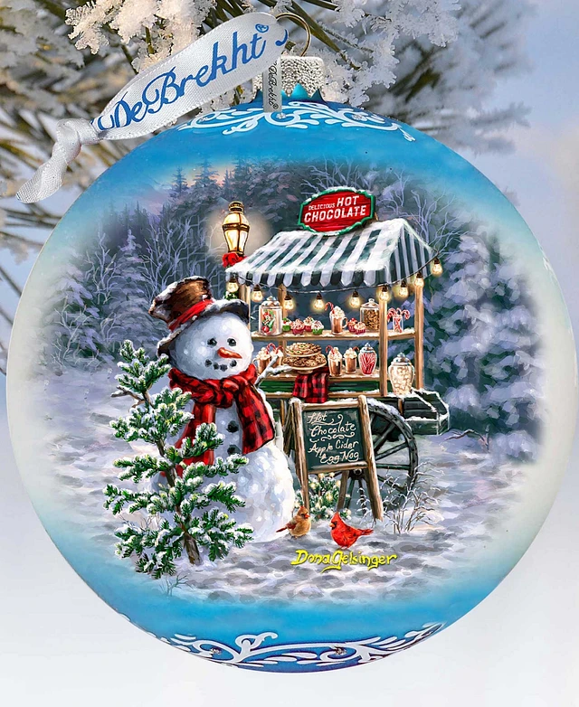 Designocracy Hot Cocoa Magic - Frosty Fun Lg Holiday Glass Collectible Ornament D. Gelsinger