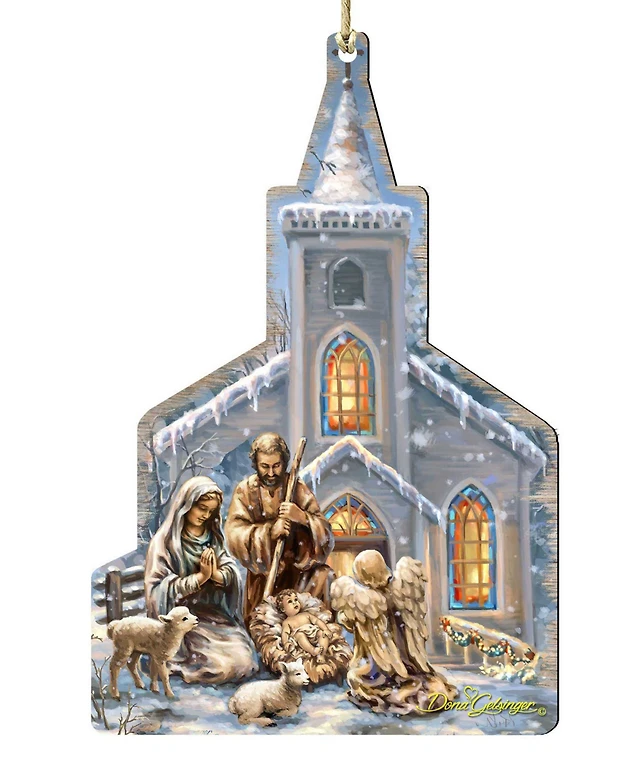 Designocracy Nativity Chapel Wood Christmas Ornament