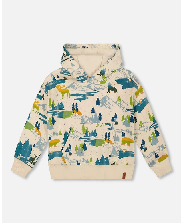 Deux par Big Boys Printed Hooded Fleece Sweatshirt Beige