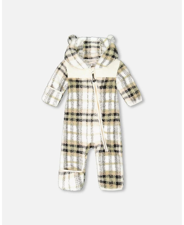 Deux par Deux Baby Boy Baby Mid-Season Plush One Piece Outerwear Black and Beige Plaid - Baby