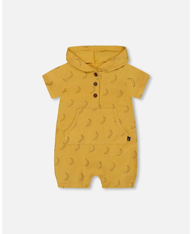 Deux par Deux Baby Boys Printed Organic Cotton Hooded Romper Yellow Bananas