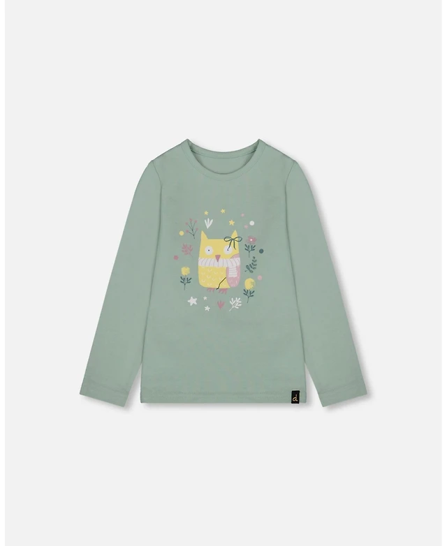 Deux par Deux Baby Girl Cotton Jersey Top Jade Green with Owl - Baby