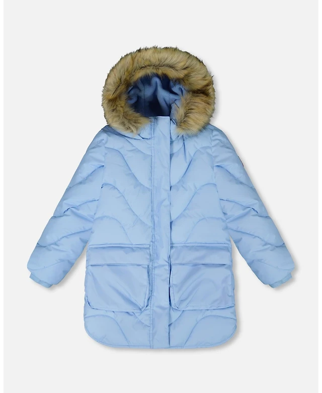 Deux par Deux Big Girls Long Wavy Quilt Puffy Winter Coat Powder Blue