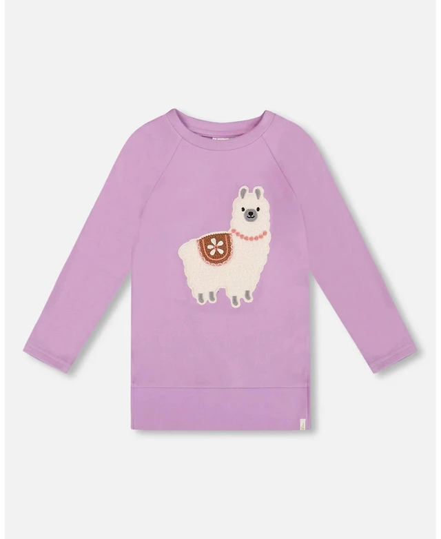 Deux par Deux Toddler Girls Super Soft Brushed Jersey Tunic Purple with Lama - Toddler|Child