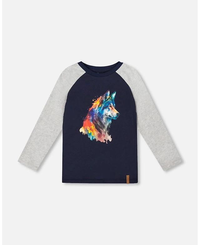 Deux par Deux Boy Long Raglan Sleeve Jersey Tee Navy Blue - Child