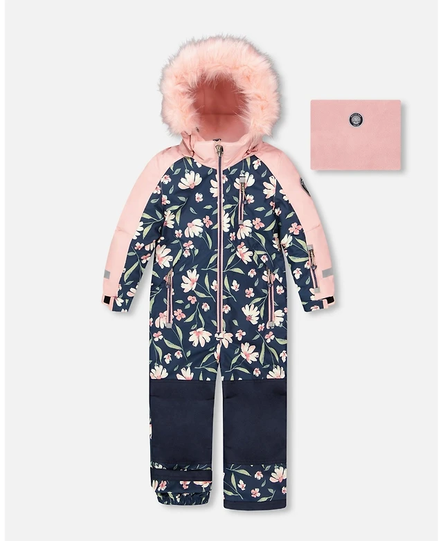Deux par Deux Girl One-Piece Play Snowsuit Navy Flower Print - Toddler|Child