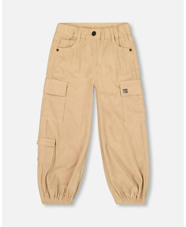 Deux par Deux Girl Parachute Corduroy Pants with Cargo Pockets Light Pecan Brown - Toddler|Child