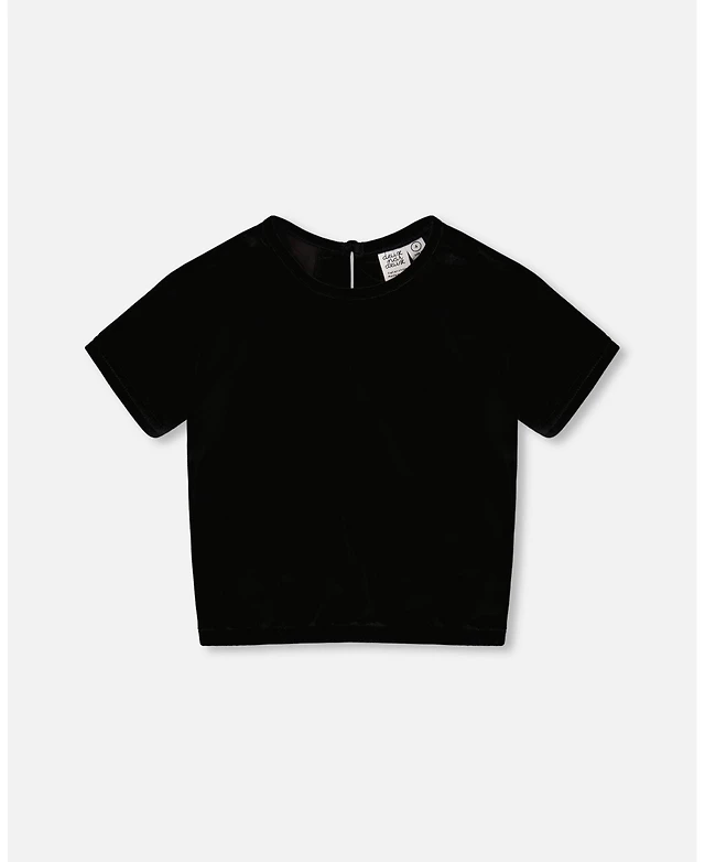 Deux par Deux Girl Short Sleeve Stretch Velour Top Black