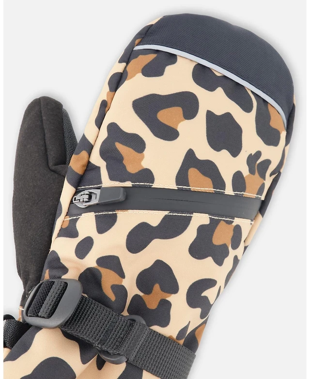 Deux par Deux Girl Winter Mittens Teknik Beige Leopard - Toddler|Child