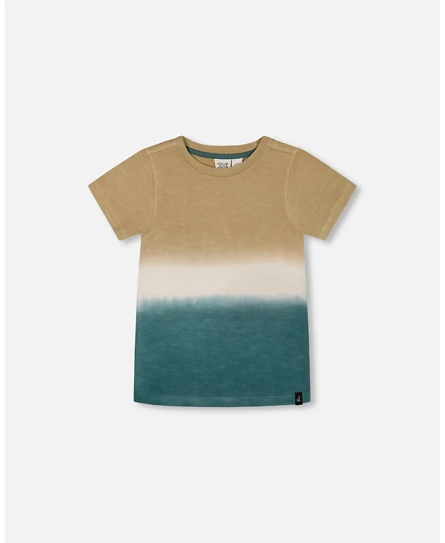 Deux par Deux Toddler Boys Short Sleeve Tee Gradient Beige And Teal - Toddler|Child