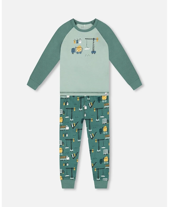 Deux par Deux Baby Boy Two-Piece Cotton Pajama Set Teal Construction Print - Baby