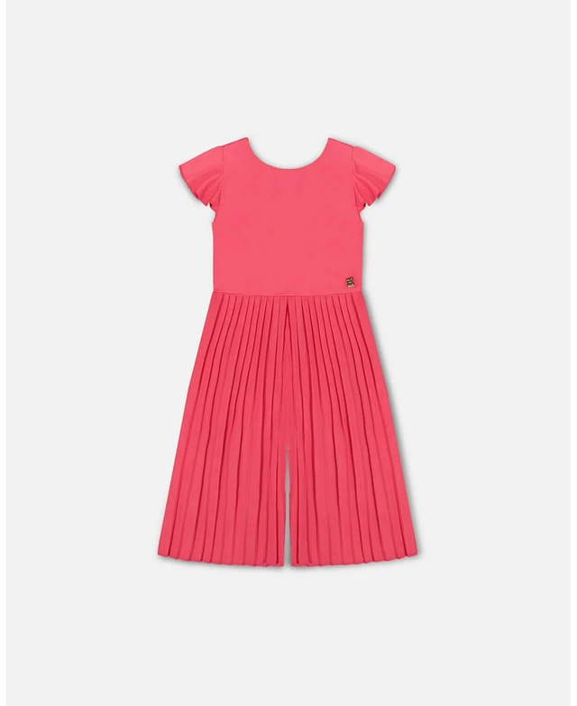 Deux par Deux Big Girls Bi-Material Pleated Wide Leg Jumpsuit Candy Pink