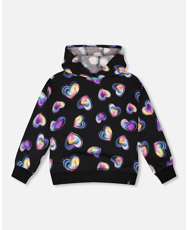 Deux par Deux Toddler Girls Fleece Hoodie Black and Multicolor - Toddler|Child