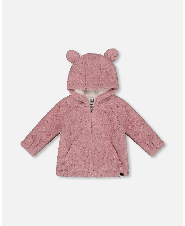 Deux par Deux Toddler Girls Hooded Full Zip Cat Plush Jacket Dusty Pink - Toddler|Child