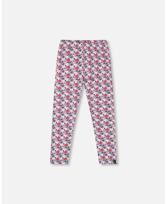 Deux par Girl Cotton Leggings Blue Apple Print
