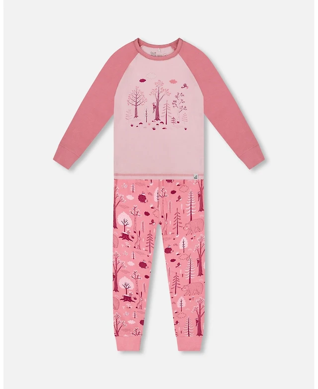 Deux par Girl Cotton Two-Piece Pajamas Pink Forest - Toddler|Child