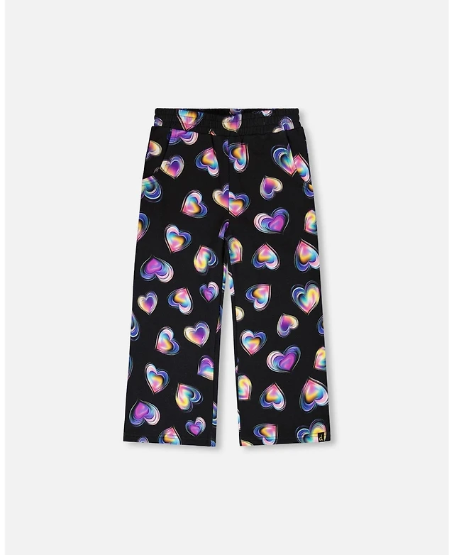 Deux par Girl Wide Leg Fleece Pants Black and Multicolor - Child