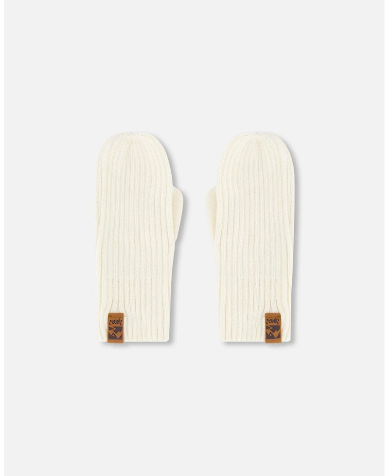 Deux par Kids Unisex Ribbed Knit Mittens Off White - Toddler|Child