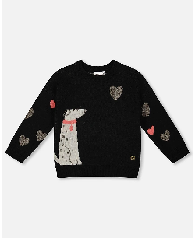Deux par Toddler Girls Knit Sweater Black with Dalmatian and Hearts - Toddler|Child