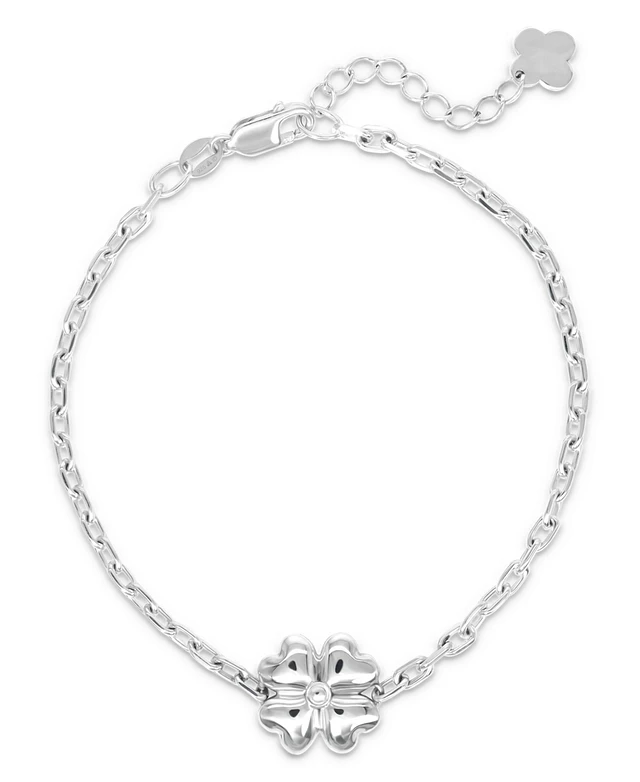 Devata Clover Heart Chain Bracelet in Sterling Silver, 7.0 in adj to 8.0 in