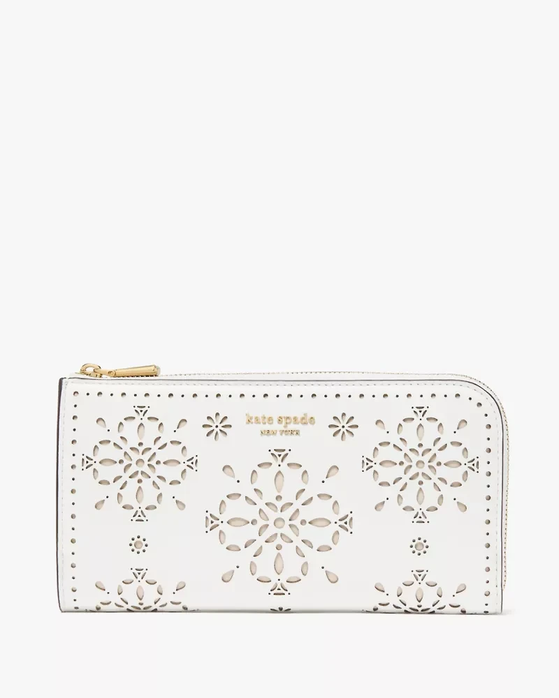 You'll reach for our Devin continental wallet on repeat. It’s made from smooth leather detailed with intricate Spade Flower perforations, so it’ll last—and look gorgeous—for years to come. PS: if you loved our Morgan styles, you’re sure to love the Devin, too!