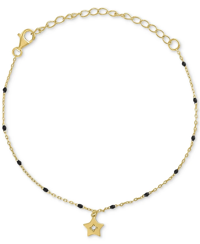 Diamond Accent & Enamel Bead Star Charm Bracelet Sterling Silver or 14k Gold-Plated