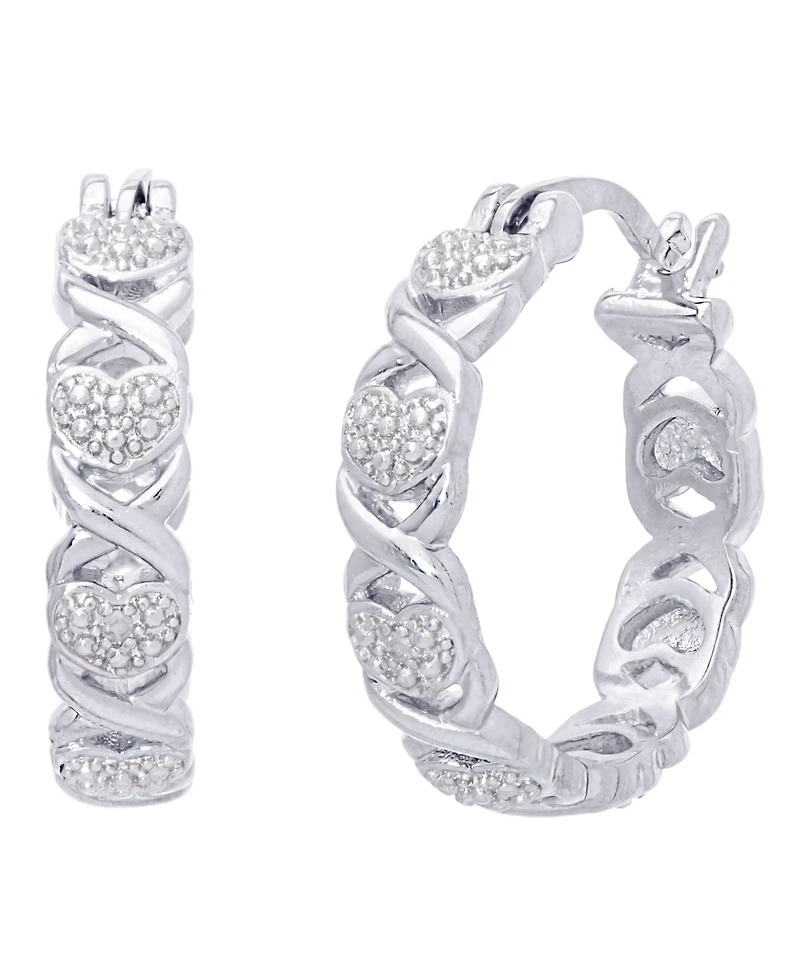 Diamond Accent 'X' Heart Small Hoop Earrings in Silver Plate in Bloomington, MN