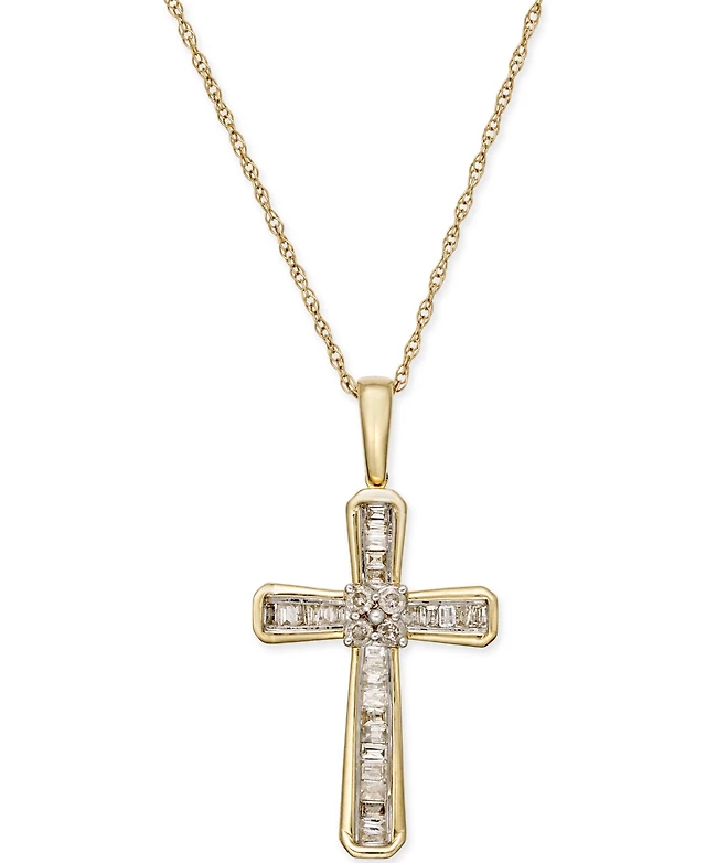 Diamond Baguette Cross Adjustable Pendant Necklace (1/5 ct. t.w) in 10k White or Yellow Gold