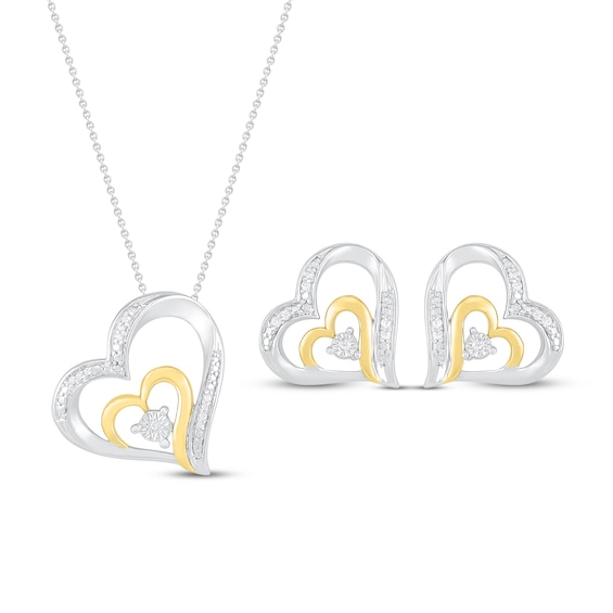Diamond Necklace & Earrings Boxed Set Sterling Silver & 10K Yellow Gold 18"