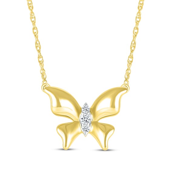 Diamond Butterfly Necklace 1/20 ct tw 10K Yellow Gold 18"